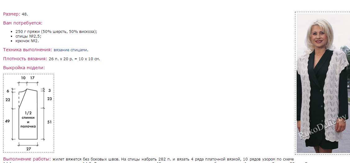 Удлиненный ажурный жилет на спицах :: Жилеты и безрукавки :: Женская одежда :: Вязание спицами/Knitted waistcoats for women :: RukoDelie.by