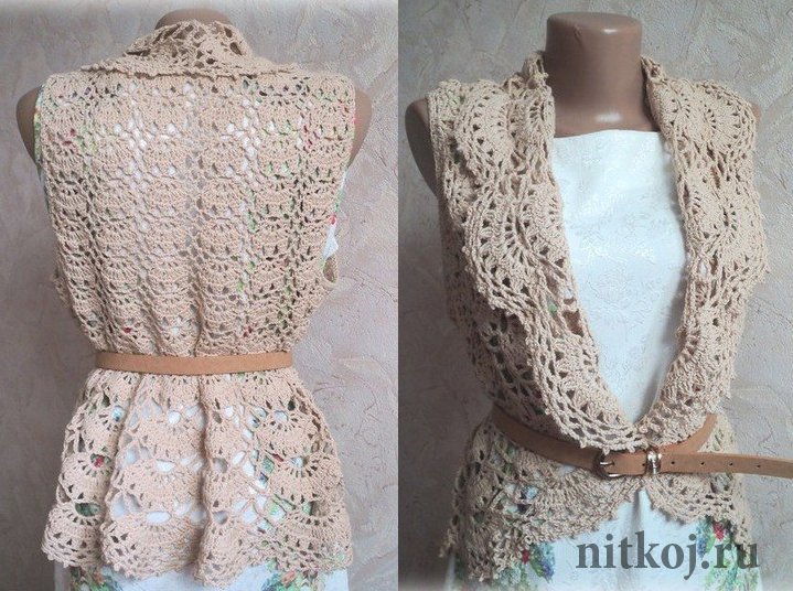 Жилет крючком с узором «веера» » Ниткой - вязаные вещи для вашего дома, вязание крючком, вязание спицами, схемы вязания