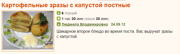 Рецепт: Картофельные зразы с капустой постные на RussianFood.com