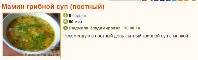 Рецепт: Мамин грибной суп (постный) на RussianFood.com