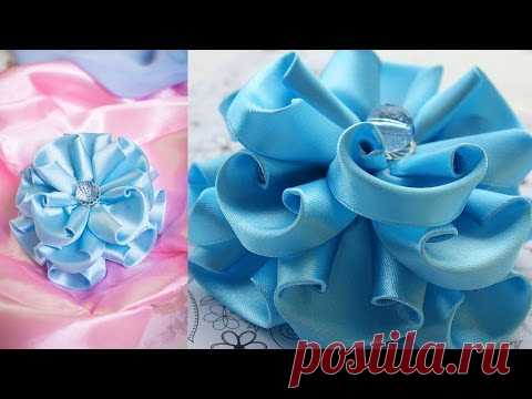 Голубой Цветок Канзаши / Пышный бант / МК / DIY / kanzashi tutorial - YouTube