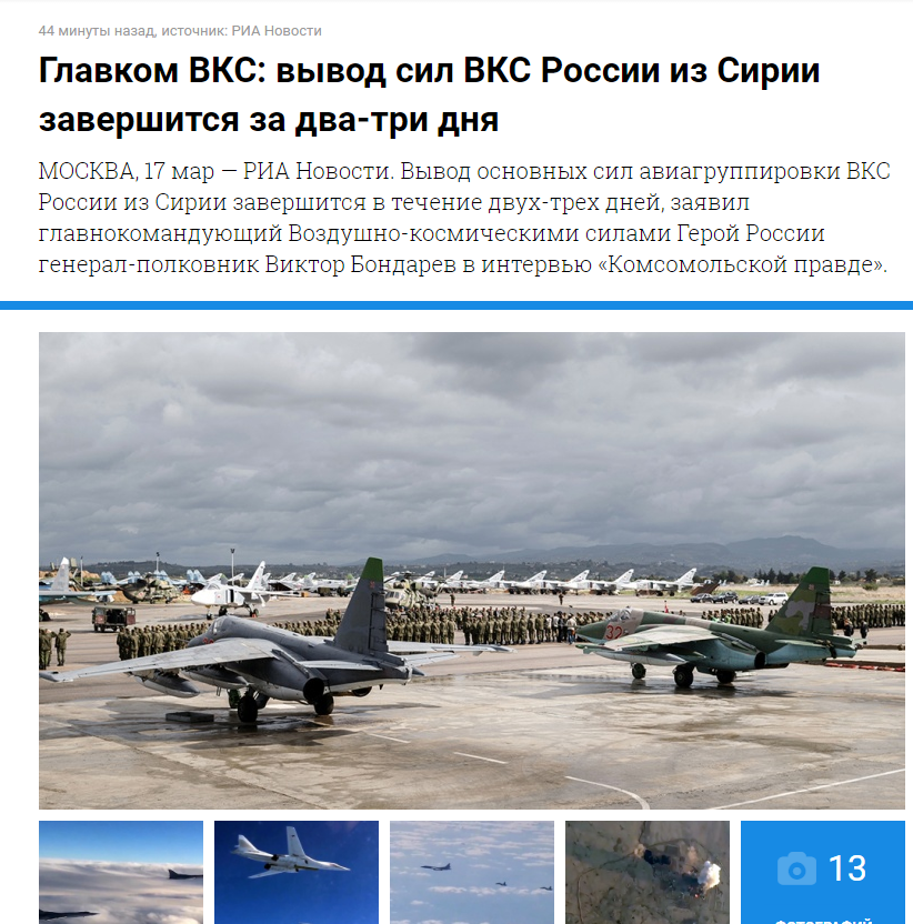 Главком ВКС: вывод сил ВКС России из Сирии завершится за два-три дня - Новости Политики - Новости Mail.Ru20160317AL PULLOUT#1