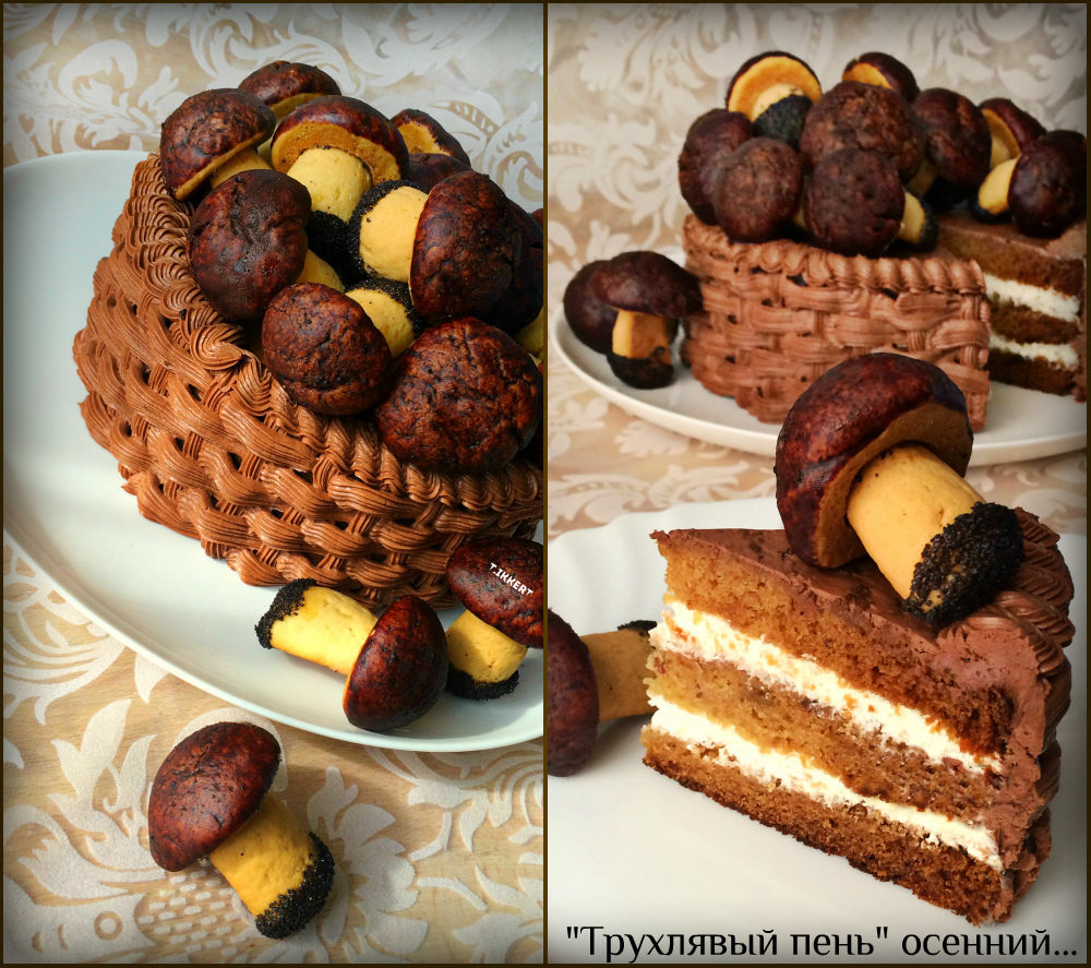 ТОРТ "ТРУХЛЯВЫЙ ПЕНЬ" осенний. корзинка с грибами