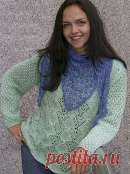 Вязание крючком и спицами - Пуловер сочетанием ажурных узоров