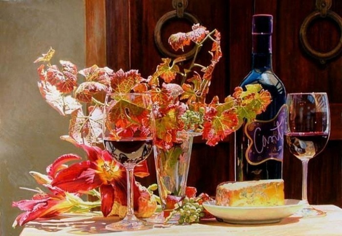 Акварели Eric Christensen цветы и вино