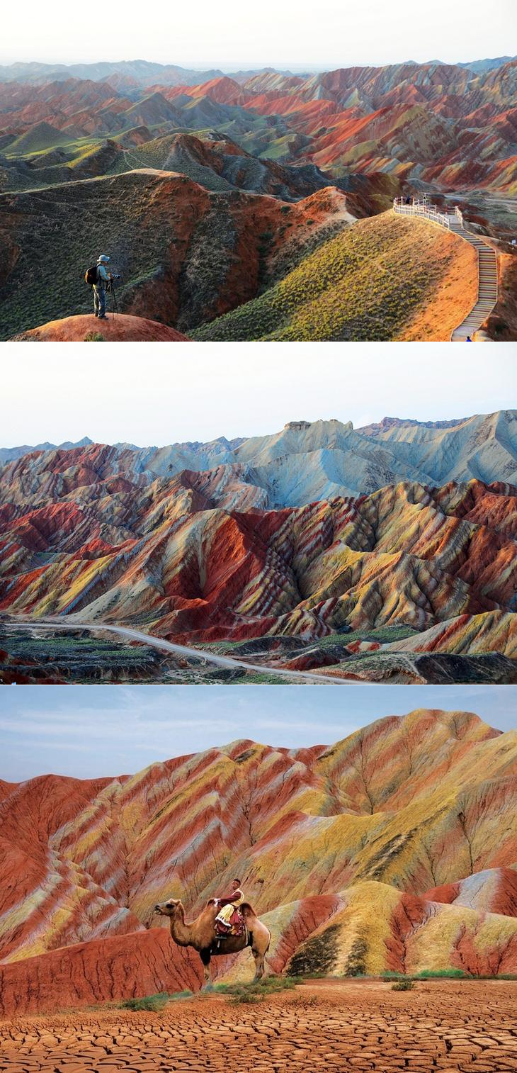Разноцветные скалы Чжанъе Данься, Китай Разноцветные скалы Чжанъе Данься (Zhangye Danxia) – уникальное скалистое формирование на юго-востоке Китая, в 2009 году признанное журналом Chinese National Geography одним из шести самых живописных ландшафтных образований Поднебесной. Находится красочная природная достопримечательность в 30 км от города Чжанъе, северо-западная провинция Ганьсу, в одноименном национальном геологическом парке, где носит звание самого популярного участка, привлекающего огром