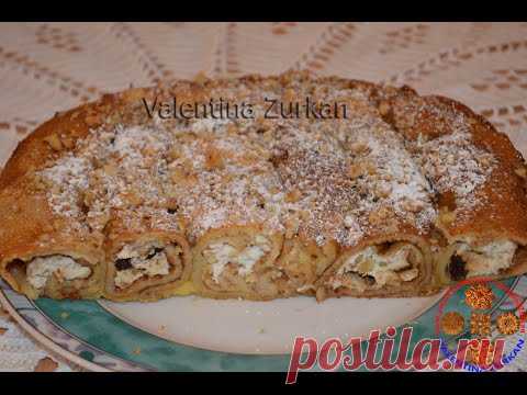 Блинный пирог с творогом, изюмом и грецкими орехами.