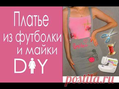 Переделка одежды - Что сшить из старой футболки (How to make a Dress from t-Shirt- DIY Tutorial)