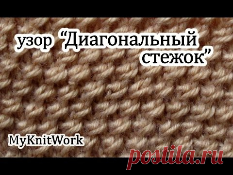 Вязание спицами. Вяжем узор "Диагональный стежок". Knitting. Knit pattern "diagonal stitch."