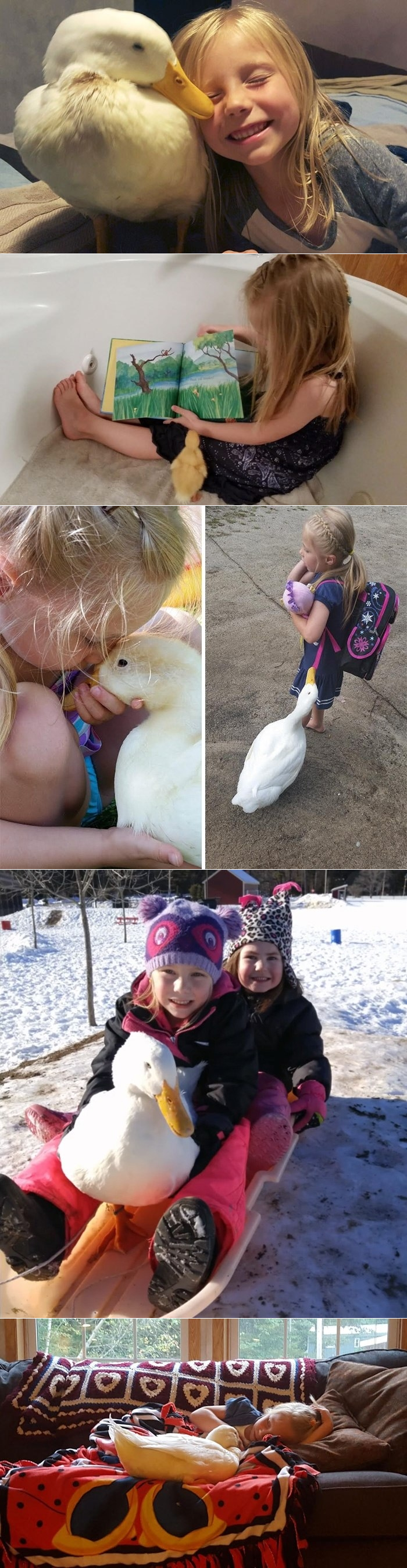 5-летняя девочка и её утка Снежинка, которая считает девочку своей мамой и ходит за ней по пятам - Путешествуем вместе