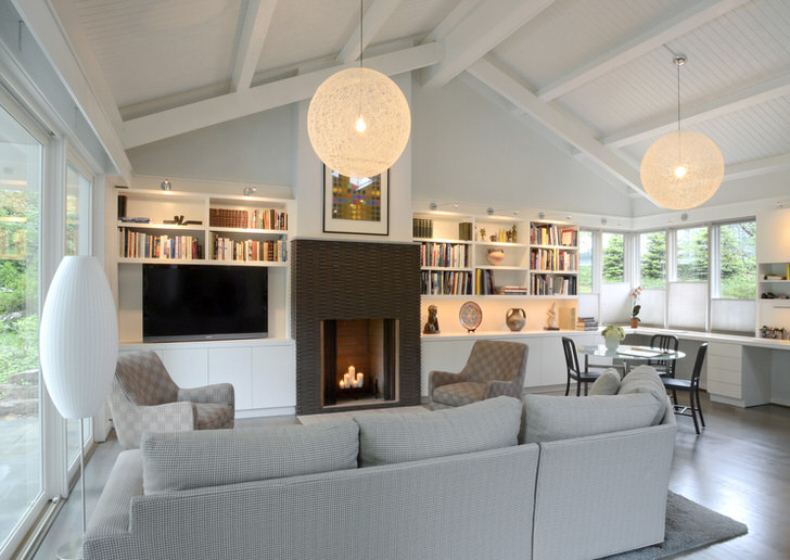 Камин в интерьере гостиной. Фото