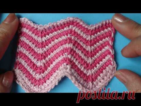Зигзаг крючком Узор тунисского вязания 20 - YouTube
