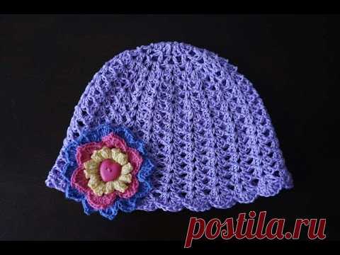 Шапочка на девочку крючком / Crochet girl's hat - YouTube