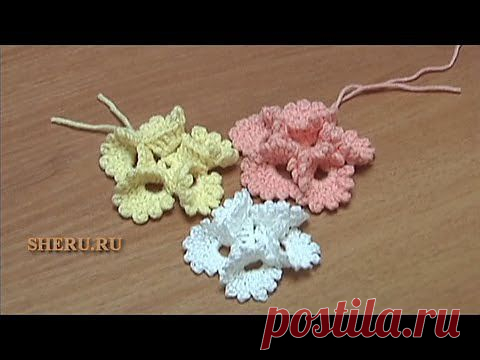 Вязание Цветов Урок 13 Как связать Цветочек лепестки которого выполнены из столбиков с пико - YouTube