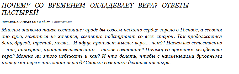 ПОЧЕМУ СО ВРЕМЕНЕМ ОХЛАДЕВАЕТ ВЕРА? Ответы пастырей