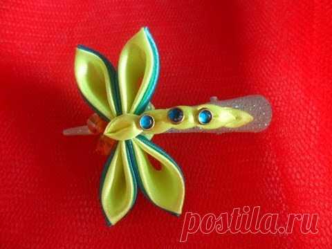 Заколка Стрекоза своими руками . Мастер класс канзаши / Master Class : Dragonfly kanzashy