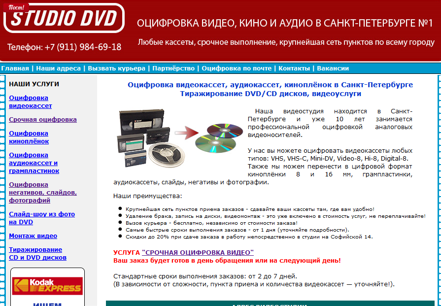 Видеостудия STUDIODVD — Оцифровка видео в Санкт-Петербурге, оцифровка видеокассет.