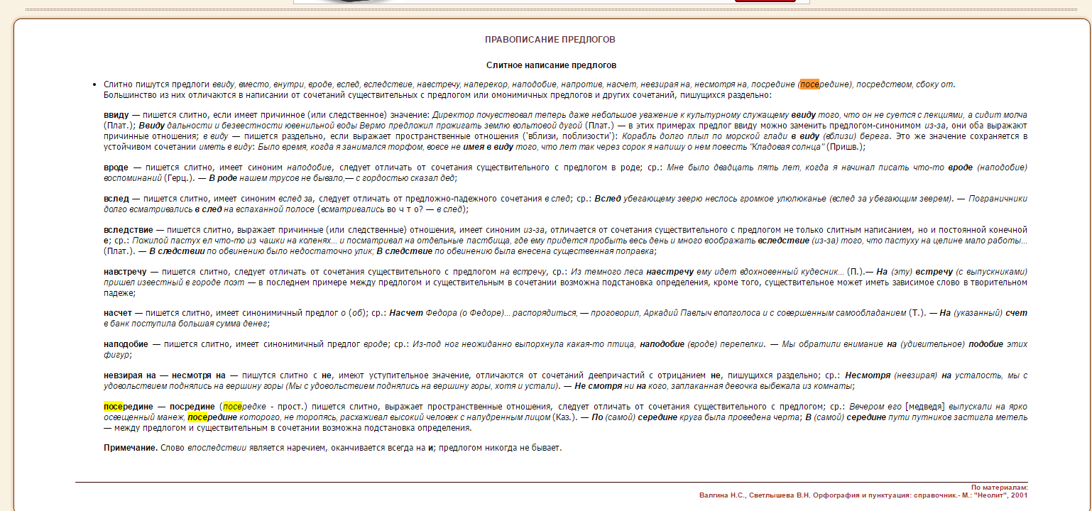 Культура письменной речи. РУССКИЙ ЯЗЫК - ПРАВОПИСАНИЕ ПРЕДЛОГОВ. Слитное написание предлоговпосередине ИЛИ по середине (чего-л) ??