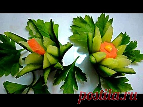 Цветы из огурца. Украшения из овощей. Decoration Of Vegetables