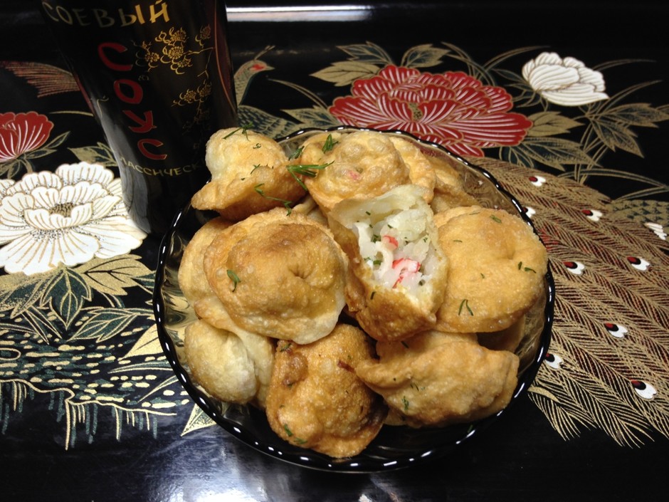 Жареные пельмени с рисом и крабовыми палочками — Вкусные рецепты