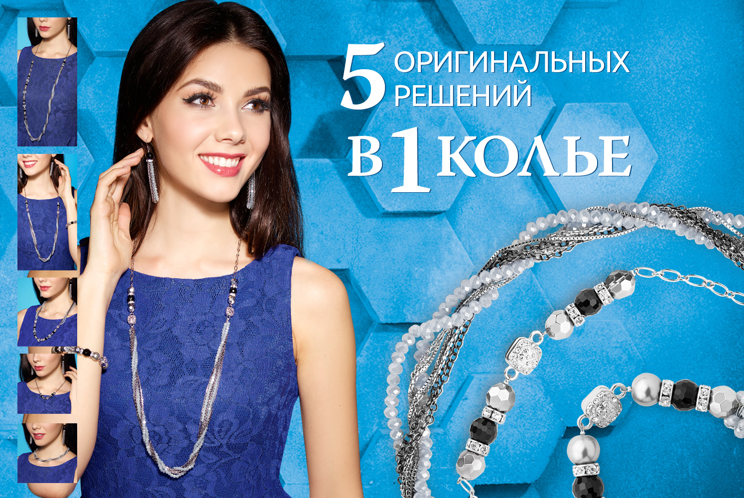 5 оригинальных решений для вашего образа! Необычная новинка – колье 5 в 1 (9530). Оно позволит вам менять образы каждый день. Колье оснащено надежными магнитными застежками, поэтому вы сможете варьировать длину изделия под любой выбранный образ. Самая маленькая часть образует элегантный браслет. Серебристый цвет, бусины, цепи со звеньями разного диаметра: все модные тренды собраны в одном украшении. Хотите стать еще роскошнее, тогда подберите к колье подходящие серьги (9534). В комплекте эти акс