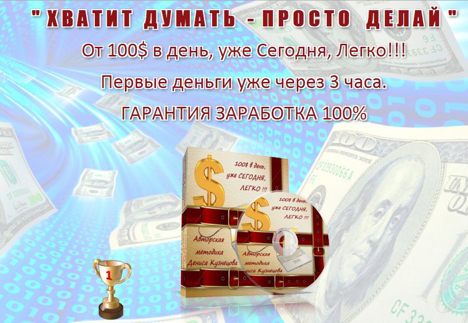 100$ в День, уже Сегодня. Легко ! ! ! Авторская пошаговая методика от Дениса Кузнецова. http://qwertypay.com/go?prod=1539&aff=regina13Такого еще НЕ БЫЛО ! Первые деньги уже через 3 часа плюс Бонус (программа автозаработка) вы спите а деньги капают. В видеокурсе разобраны пошаговые действия как с полного 0 выйти на доход 95 580 $ за 8 дней. ГАРАНТИЯ 100%
