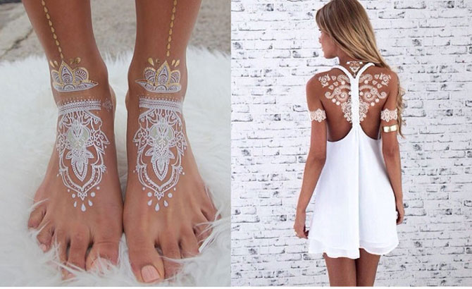 Роспись тела белой хной: чувственные узоры, похожие на изящные кружева