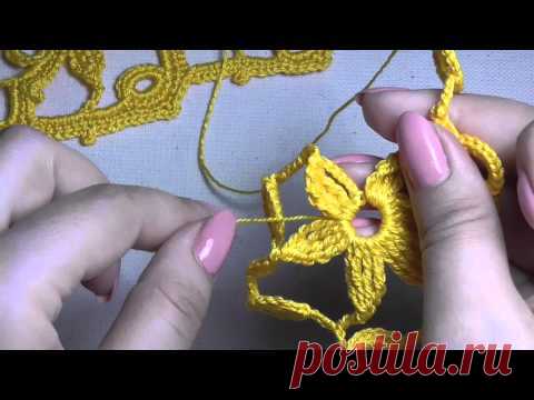 Видео-урок. Тесьма широкая с цветочками. Ирландское кружево.