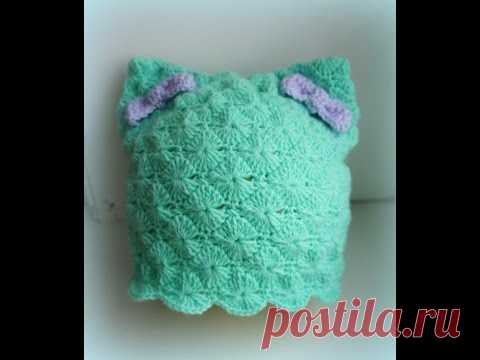 Вязаная шапка крючком Котошапка Очень легкая! - YouTube