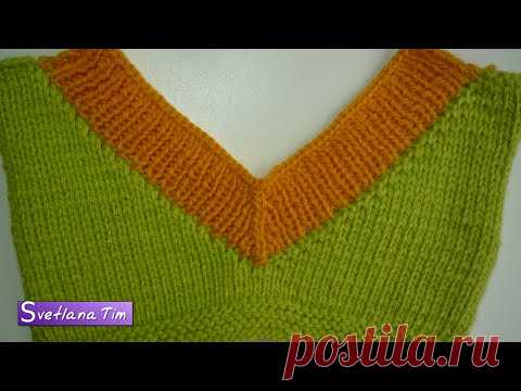 V-образный ВЫРЕЗ ГОРЛОВИНЫ. Вязание спицами #164