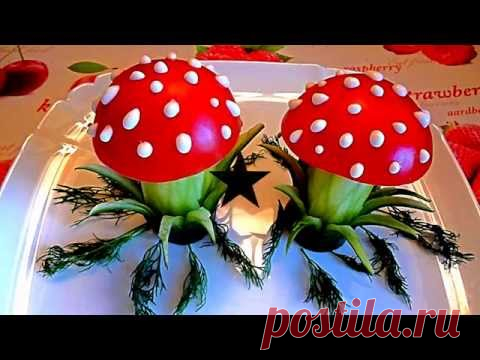 Мухоморы. Украшения из помидора и огурца. Украшения из овощей. Decoration of vegetables. - YouTube