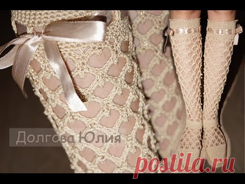 Вязание крючком сапожки на подошве - ажурный узор \\\ Crochet boots with soles - openwork pattern - YouTube