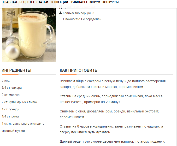 Эг Ног-Egg Nog (традиционный рождественский напиток) рецепт с фотографиями