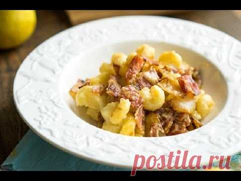 Макароны с беконом, грушей и сыром - YouTube | Макароны получаются с сюрпризом — первым ощущается ярки вкус бекона, затем аромат карамелизированного лука, а в текстуре вдруг неожиданно появляется мягкая груша, я уже не говорю про соус Бешамель и сыр!!!