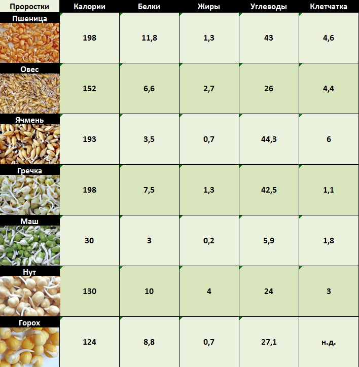 Калорийность проростков
