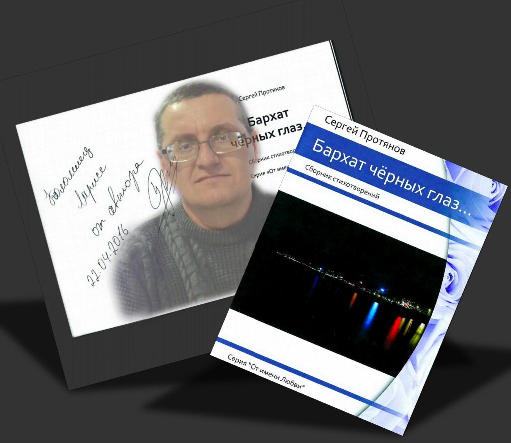««Бархат чёрных глаз» - сборник стихотворений в серии «От имени любви» Издательство "Союз писателей" ISBN: 978-5-00073-264-9 «Бархат чёрных глаз» – это сборник стихотворений, которые никого не оставят равнодушным. Автор Сергей Протянов предстаёт перед нами как вдумчивый, глядящий в самую суть вещей человек. Его поэзия пропитана философичностью, лиризмом, особым видением мира. Его стихи отражают мир таким, каков он есть, без лишних пр