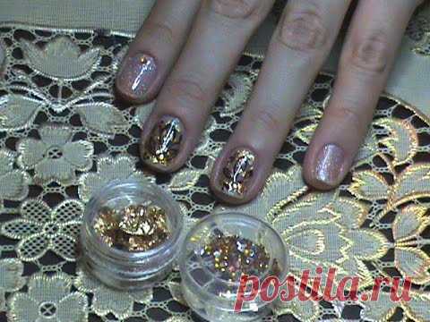 Нежный осенний маникюр с отрывной фольгой/ Autumn nail art with foil