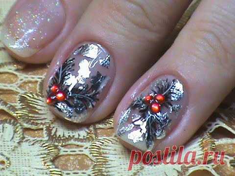Новогодний маникюр с отрывной фольгой/ New Year nail art design with foil