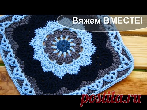 N 7. Вяжем крючком вместе "Бабушкин квадрат" - "Pizzazz"