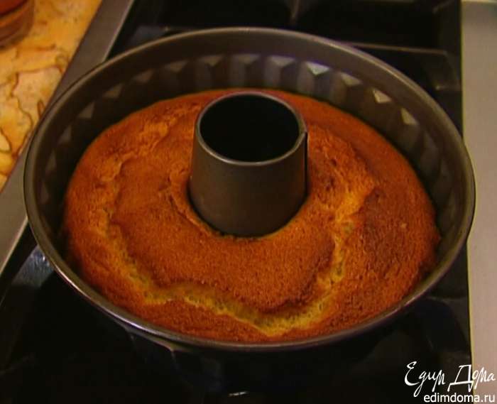 - Форму для выпечки смазать оливковым маслом. Выложить тесто в форму и поставить в разогретую духовку на 45 минут. Прежде чем вынимать готовый бисквит из формы, дать ему постоять 10 минут.