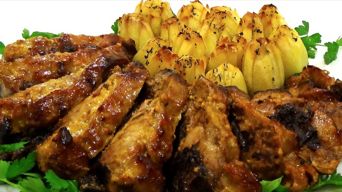 Запеченное мясо "Книжка" и картофель "Нарядный"