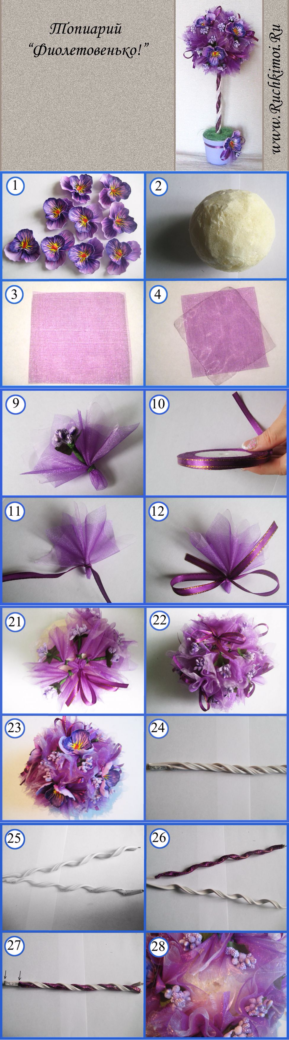 Топиарий с анютиными глазками из фоамирана своими руками | Ручки мои
