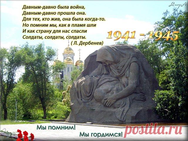 Давным-давно была война, Давным-давно прошла она. Для тех, кто жив, она была когда-то.Но помним мы, как в пламя шли И как страну для нас спасли Солдаты, солдаты, солдаты. Годы, сколько-б ни шли,Вечно помнить родной стране Всё, что сделали вы В этой войне, В трудной войне, В страшной войне.Давным-давно была война.муз. А. Зацепина. сл. Л. Дербенева. Вокал: Стелла Платон.original.jpg (640×480)