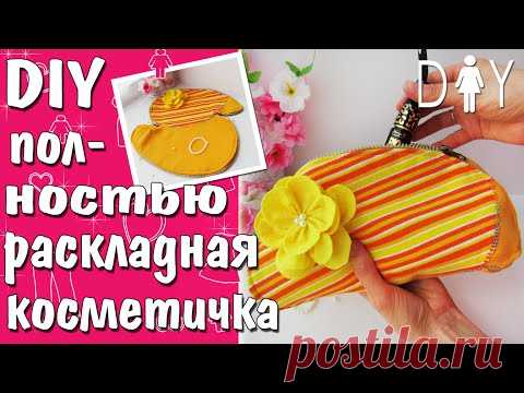 ПОЛНОСТЬЮ РАСКЛАДНАЯ косметичка своими руками всего в один шов. Удобно и стильно. Простой мастер-класс. Вам понадобится ткань и молния длиной около 25-30 см. Шаблон косметички есть в описании под видео на канале ютуб.