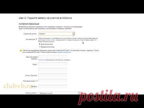 Google AdSense - регистрация. Партнерская программа YouTube. Урок 2. CLUBVB.RU - YouTube