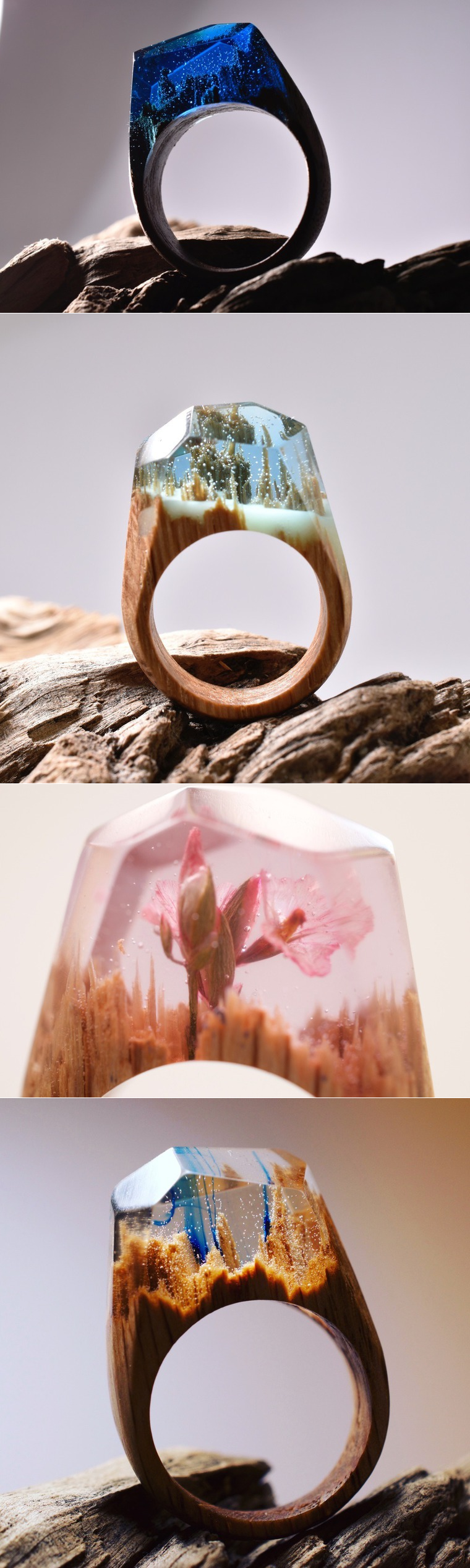 Миниатюрные миры в деревянных кольцах ручной работы Secret Wood