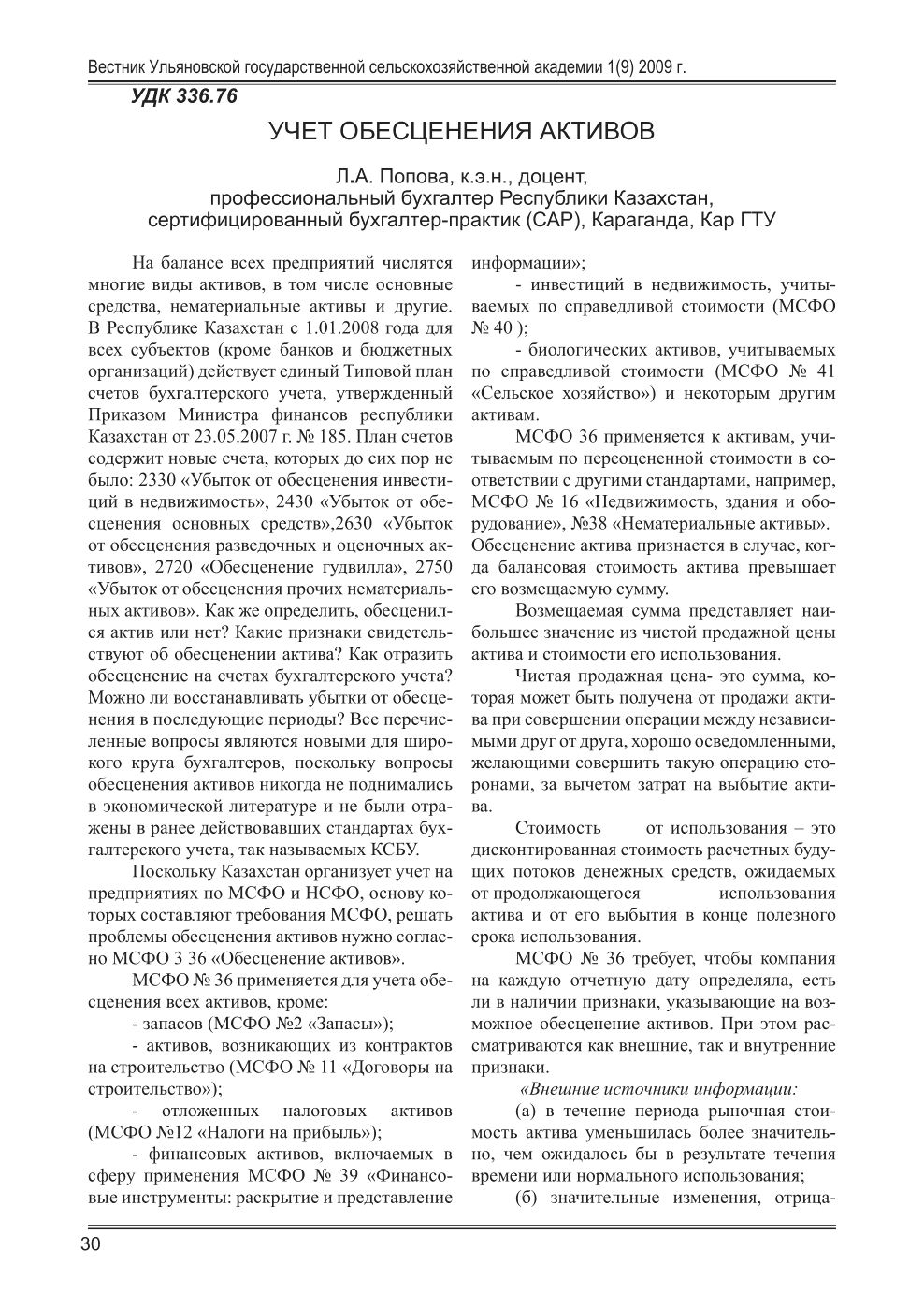 Учет обесценения активов - тема научной статьи по экономике и экономическим наукам, читайте бесплатно текст научно-исследовательской работы в электронной библиотеке КиберЛенинка