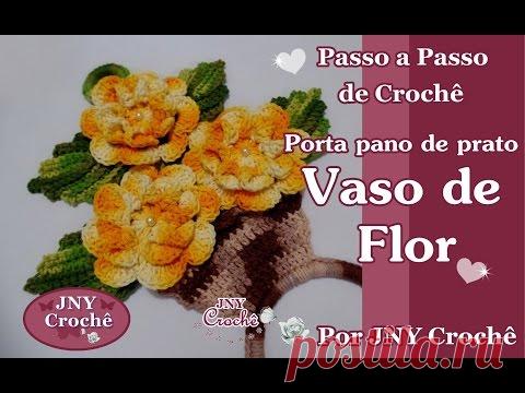Porta pano de prato de crochê Vaso de Flor por JNY Crochê