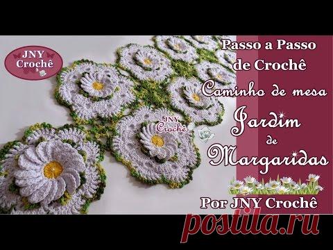 Passo a Passo de crochê Caminho de Mesa Jardim de Margaridas por JNY Crochê