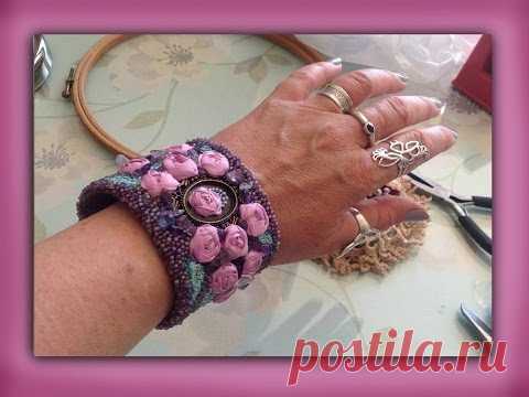 how to embroider a silk ribbon spider rose bracelet cuff